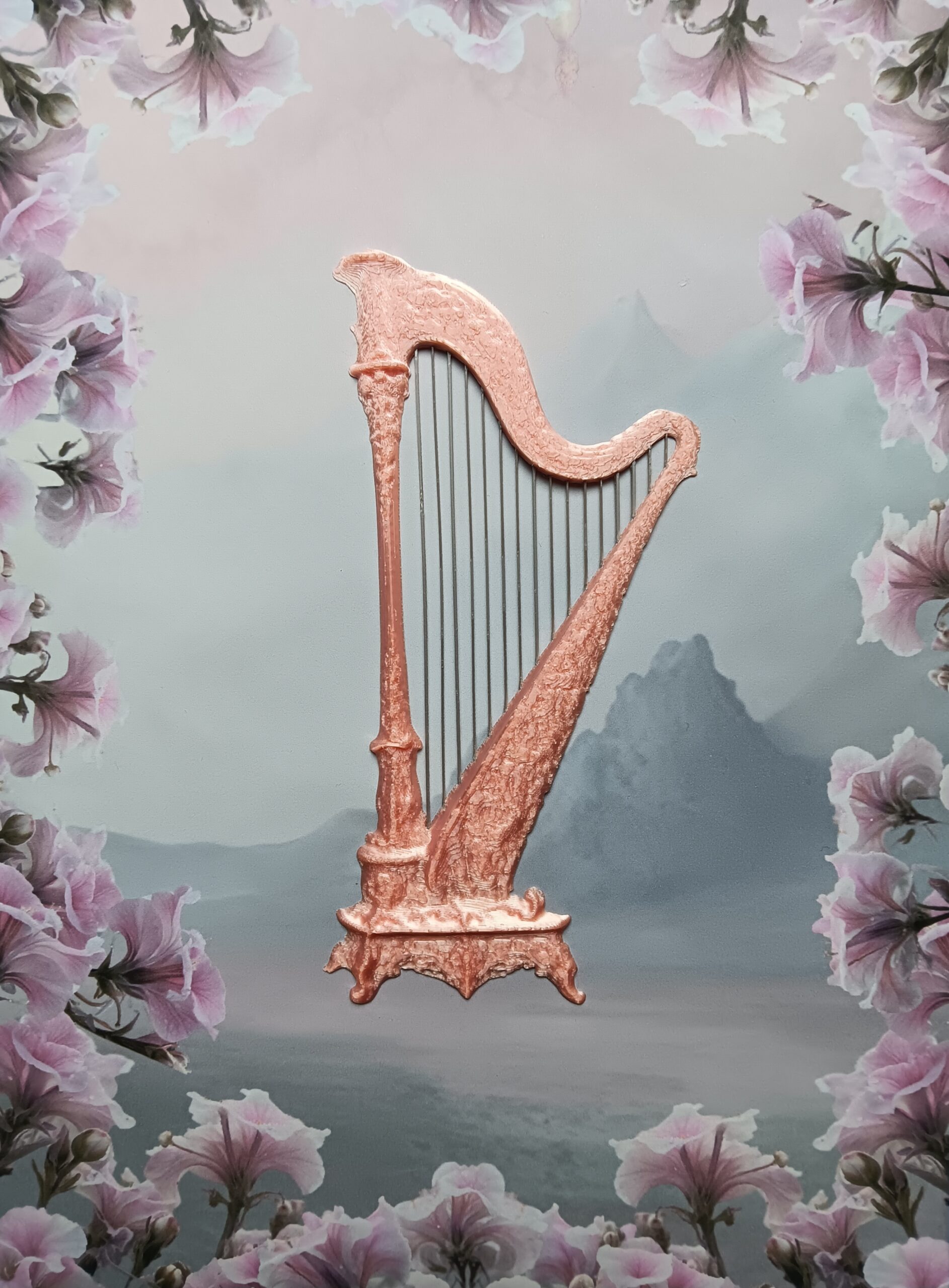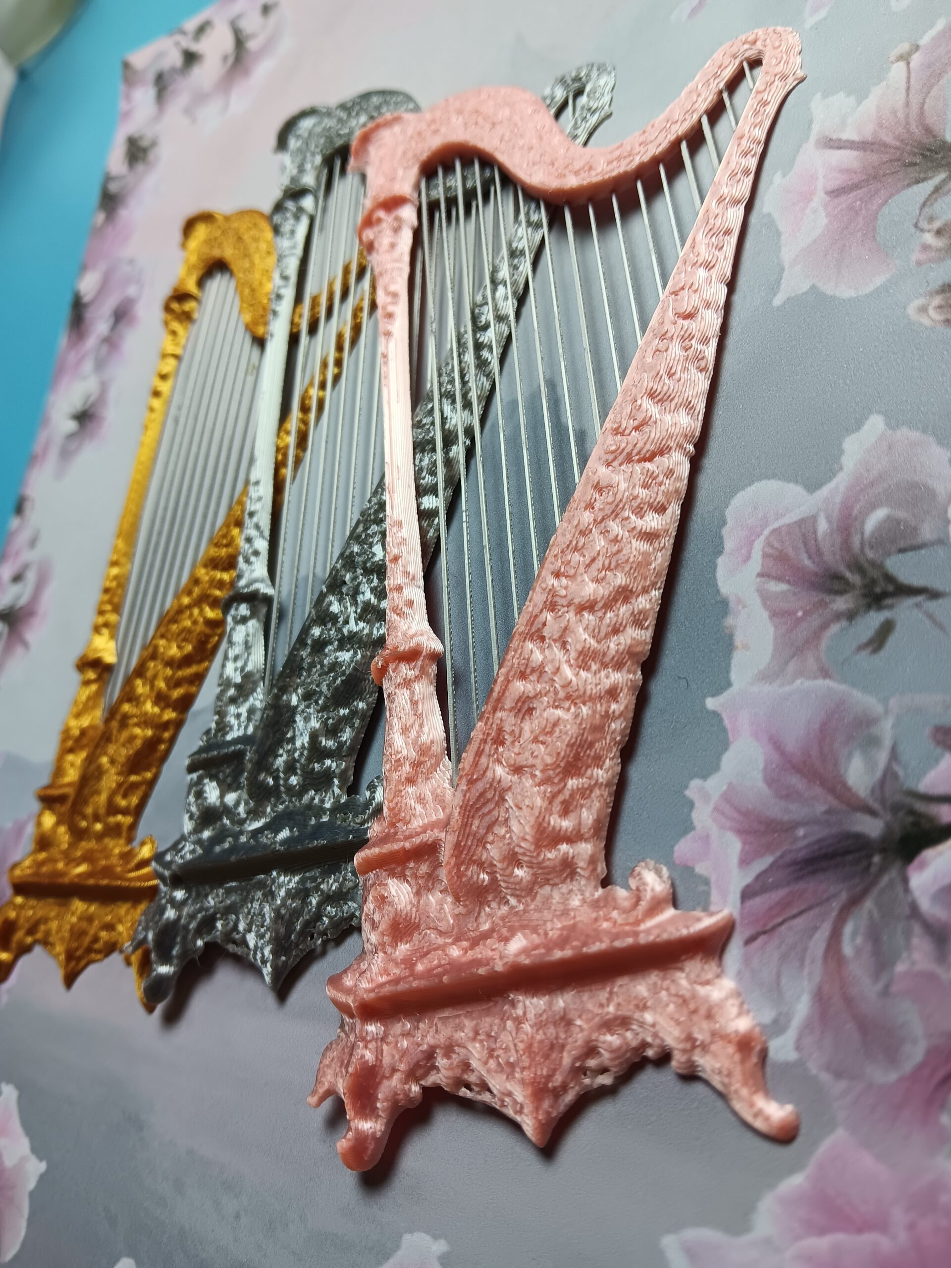 Harppu kuuluu Mirabilian soittimien sarjaan, jossa klassiset instrumentit on tulkittu koristeellisiksi reliefeiksi.